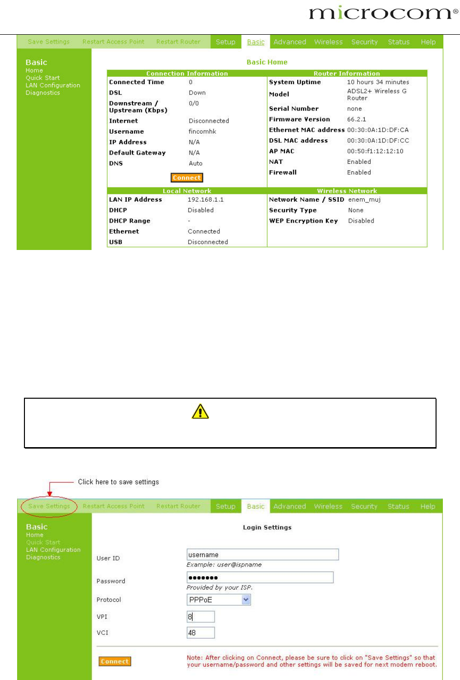 The Quick Start page is meant for basic users whom only require easy connectivity to the Internet witho